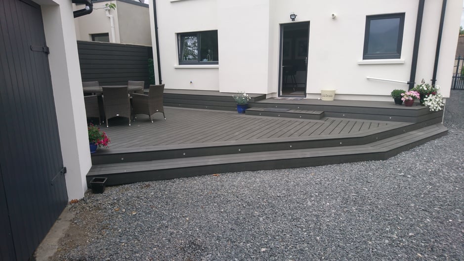 This is a deck we completed recently in Clane for James and Linda. They decided to go with our eben colour decking for this nice secluded area in their garden. Not only has this decking brought a new life to the garden it also creates a space to entertain friends and family for the remainder of this amazing summer we are having and many more in the future!